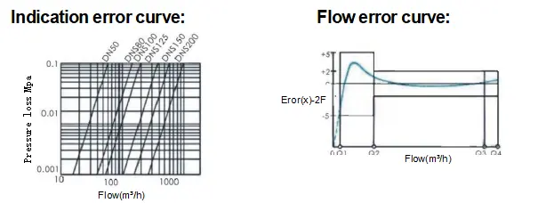 Β. Όταν η θερμοκρασία του νερού είναι≤30℃, το μέγιστο επιτρεπόμενο σφάλμα στην υψηλή περιοχή (Q2≤Q≤Q4) είναι ± 2% Όταν η θερμοκρασία του νερού είναι >30℃, το μέγιστο επιτρεπόμενο σφάλμα στην υψηλή περιοχή (Q2≤Q≤Q4) είναι ± 3%